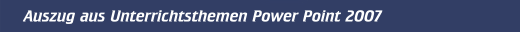 BildschirmaufbauFertigen einer Präsentation nach VorlageBenutzerdefinierte AnimationenEinrichten einer Präsentation zu Werbezwecken / Mitnahme